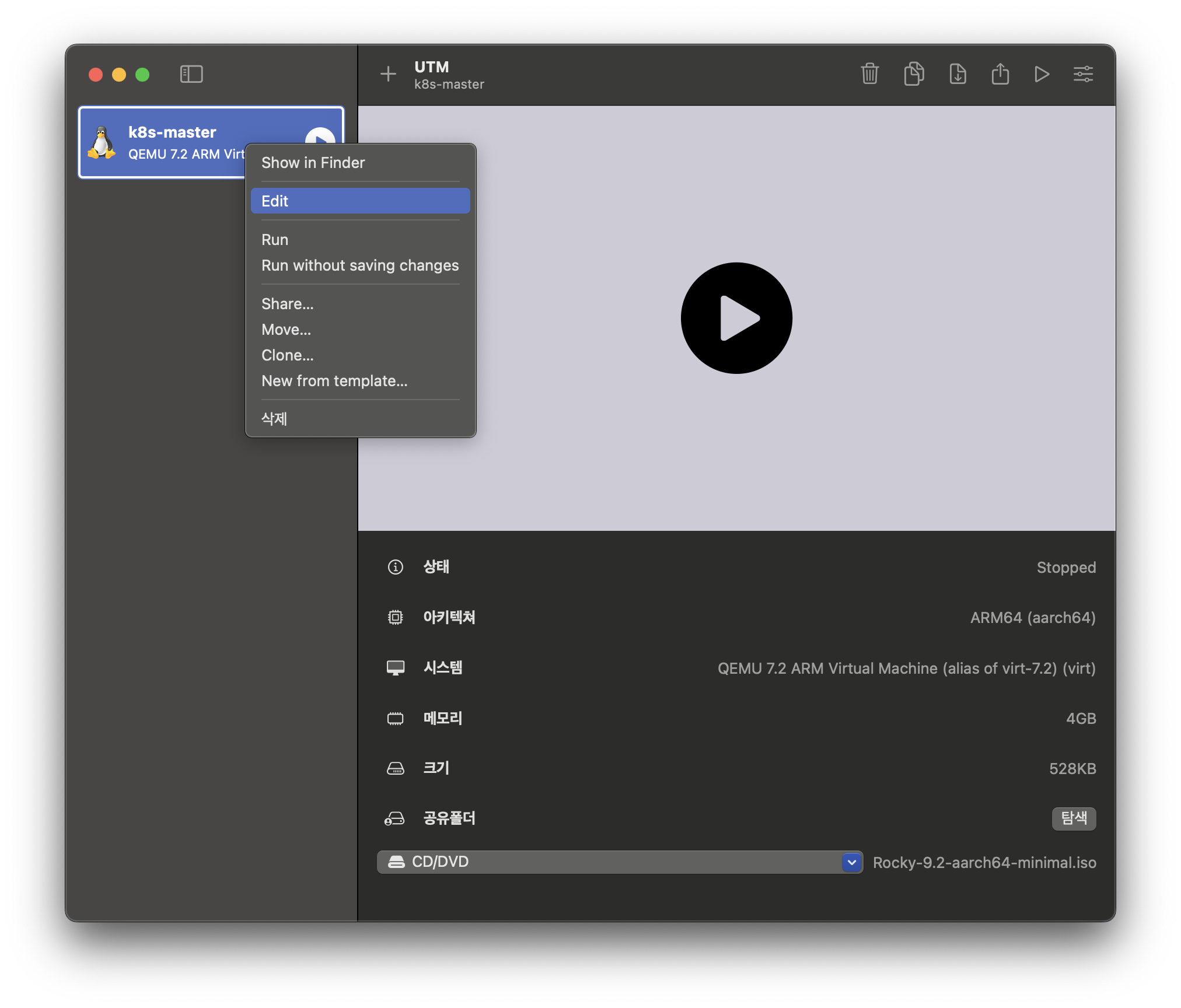 - Mac M1 UTM을 사용해 k8s를 구축한다.