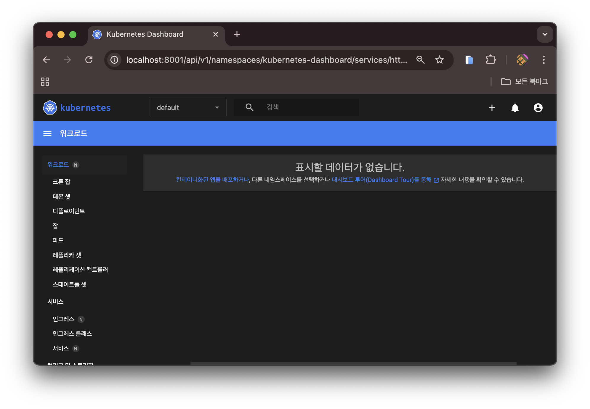 설치 완료 후 대시보드 화면